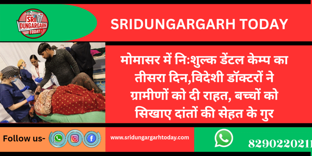 मोमासर में निःशुल्क डेंटल केम्प का तीसरा दिन,विदेशी डॉक्टरों ने ग्रामीणों को दी राहत, बच्चों को सिखाए दांतों की सेहत के गुर