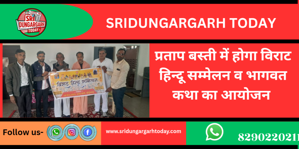 कस्बे की प्रताप बस्ती के निकट राम नगर आश्रम में आज रविवार को हिन्दू सम्मेलन व भागवत कथा को लेकर एक बैठक का आयोजन संत मोहनरामजी रामस्नेही के सान्निध्य किया गया। बैठक में हिन्दू विरोट सम्मेलन के बैनर का विमोचन भी किया। इस दौरान 8 फरवरी को हिन्दू सम्मेलन के कार्यक्रम करने का निर्णय लिया गया। इसके साथ आश्रम में भागवत कथा का भी आयोजन किया जाएगा। 8 फरवरी को सुबह 12.30 बजे वीर तेजाजी मंदिर से कलश यात्रा निकाली जाएगी। कलश यात्रा प्रताप बस्ती से राम नगर स्थित आश्रम पहुंचेगी। जिसके बाद हिन्दू सम्मेलन होगा। 9 फरवरी से भागवत कथा का विधिवत वाचन कथा वाचक संत मोहनराम जी करेगें। बैठक में चांदराम चाहर, शंकरलाल कड़वासरा, शंकरलाल पूनिया, मुखराम हनुमान, फतेहसिंह जागिड़ आदि मौजूद रहे।