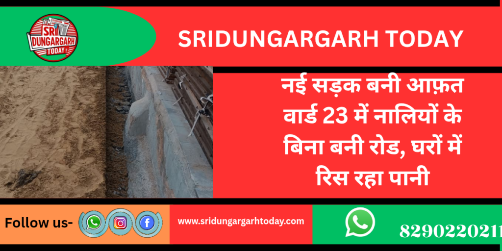 नई सड़क बनी आफत वार्ड 23 में नालियों के बिना बनी रोड, घरों में रिस रहा पानी