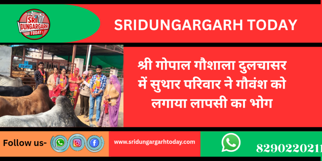 श्री गोपाल गौशाला दुलचासर में सुथार परिवार ने गौवंश को लगाया लापसी का भोग