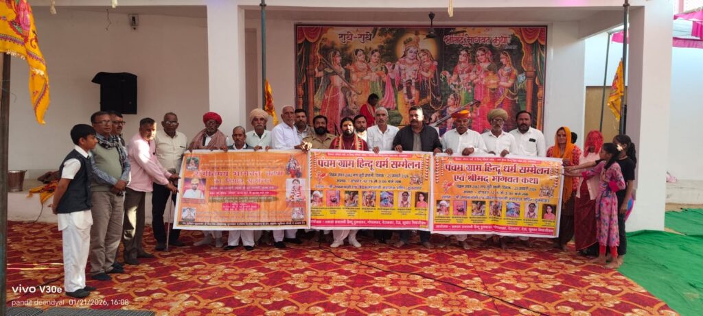 गांव कोटासर भोमिया जी मंदिर पर आज गांव कोटासर के भोमिया जी मंदिर पर चल रही श्रीमद् भागवत कथा के दौरान कोटासर ग्राम वासियों ने एवं कथा व्यास पंडित राकेश भाई पारीक ने “पंचम ग्राम धर्म सम्मेलन” एवं दुलचासर जयमलदास जी महाराज के मंदिर पर 25 जनवरी को होने संगीत में श्रीमद् भागवत कथा के आयोजन का पोस्टर विमोचन हुआ दुलचासर से पहुंचे हिंदू सम्मेलन कार्यक्रम के कार्यकर्ता ओमप्रकाश सारस्वत, ओम प्रकाश जाजड़ा, विनोद कुमार तांवनिया, श्रीभगवान सैन धर्मेंद्र स्वामी, दिनेश सारस्वत, गोविंदराम सैन सहित पहुंचे गांव कोटासर आस्था के केंद्र भोमियाजी मंदिर पर पहुंचकर राष्ट्र हिंदू सम्मेलन कार्यक्रम का दिया निमंत्रण।