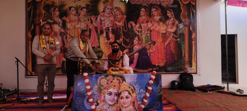 सांख्य के बारे में विस्तृत वर्णन करते हुए उन्होंने कहा कि जो भौतिक तत्वों के विशेषण के माध्यम से अत्यन्त स्पष्ट वर्णन करे वह सांख्य है। दर्शन का दृष्टि से इस शब्द का प्रयोग इस लिए होता है कि सांख्य दर्शन विशेषणात्मक ज्ञान का प्रतिपादन करता है। इसी ज्ञान के द्वारा व्यक्ति जड़, पदार्थ व आत्मा में भेद करने में समर्थ बनता है। उन्होंने कहा कि सांख्य व भक्ति एक ही साधन के दो विशेष के दो स्वरूप हैं तथा सांख्य का अंतिम लक्ष्य अथवा स्वरूप केवल भक्ति ही है। आयोजन समिति के अगरसिंह पड़िहार ने बताया कि रविवार को कथास्थल पर नंदोत्सव का आयोजन होगा।