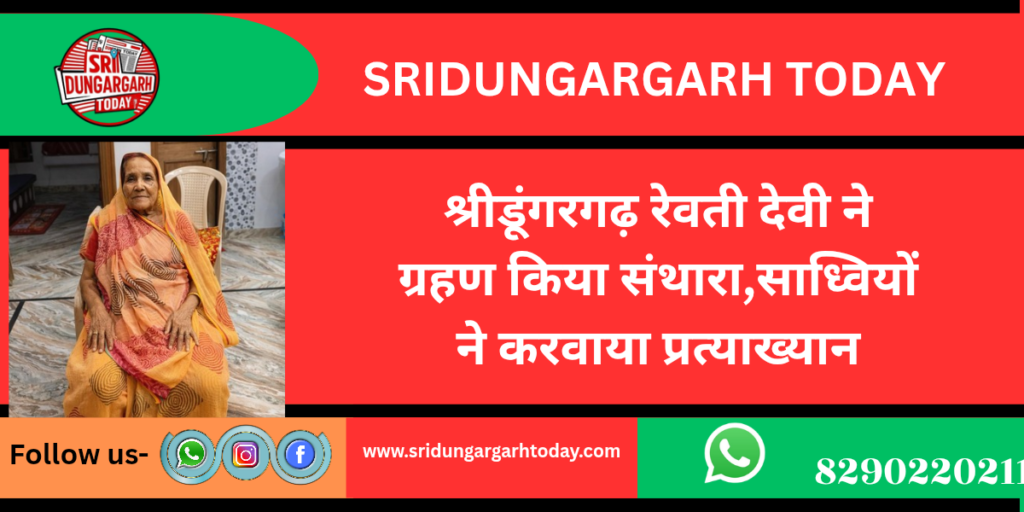 जैन धर्म की तप, त्याग और आत्मसंयम की परंपरा का पालन करते हुए कस्बे में एक जैन महिला ने संलेखना विधि के तहत संथारा ग्रहण किया। कालू बास निवासी सामाजिक कार्यकर्ता अशोक बैद की माता एवं माणिकचंद बैद की पत्नी रेवती देवी बैद ने आज सुबह 7:28 बजे संथारा स्वीकार किया।