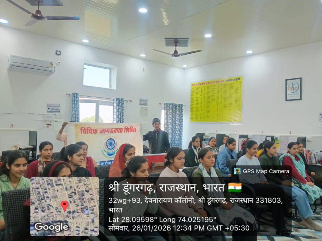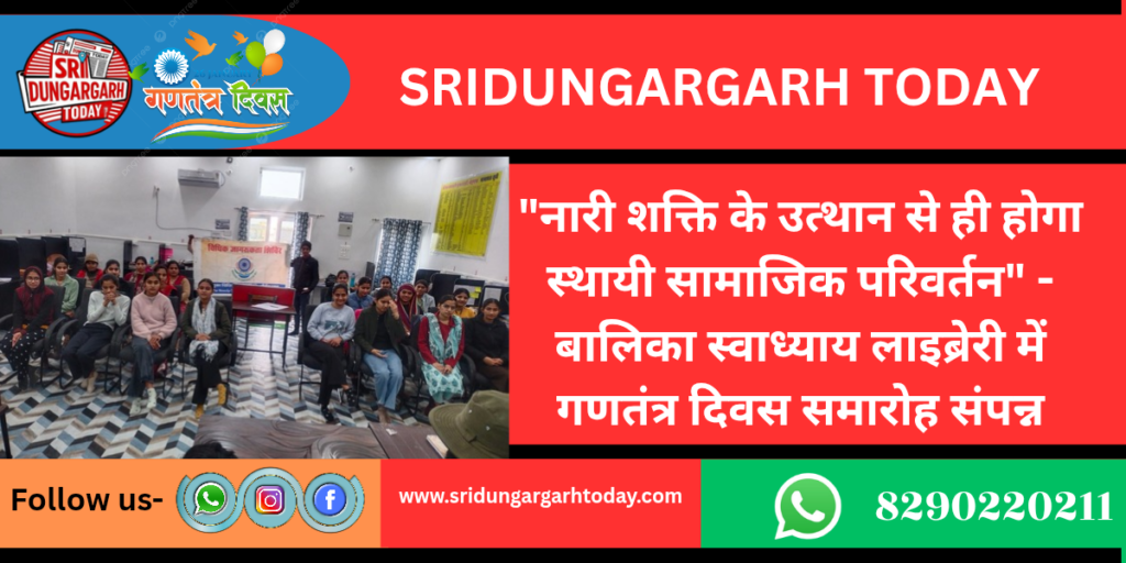 तालुका विधिक सेवा समिति, श्री डूंगरगढ़ के तत्वावधान में आज ‘बालिका स्वाध्याय निशुल्क लाइब्रेरी’ में 77वां गणतंत्र दिवस हर्षोल्लास और देशभक्ति की भावना के साथ मनाया गया। कार्यक्रम में विधिक साक्षरता, संविधान के मूल्यों और महिला सशक्तिकरण पर विशेष जोर दिया गया।