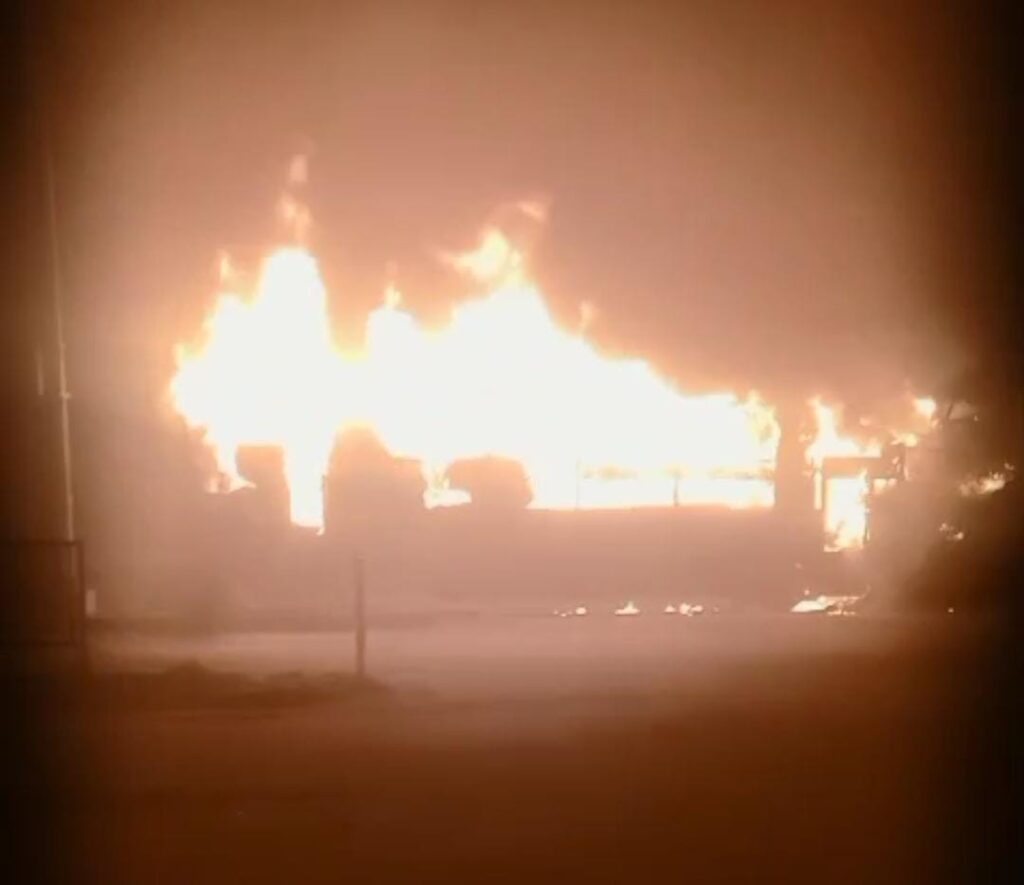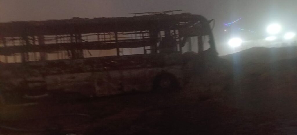 टक्कर के बाद बस में लगी भीषण आग