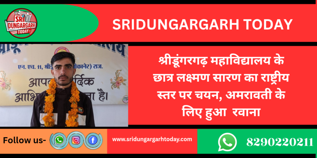 श्रीडूंगरगढ़ महाविद्यालय के छात्र लक्ष्मण सारण का राष्ट्रीय स्तर पर चयन, अमरावती के लिए हुआ रवाना