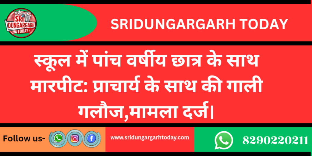 नशे की हालत में विद्यालय में घुसकर एक छात्र के साथ मारपीट करने व प्राचार्य के साथ बदतमीजी करने का मामला श्रीडूंगरगढ़ थाने में दर्ज हुआ है। राजकीय उच्च माध्यमिक विद्यालय लिखमादेसर के प्राचार्य लक्ष्मीकांत वर्मा ने इसी गांव के शिवम पुत्र पूर्णाराम नायक के खिलाफ मामला दर्ज करवाया है। वर्मा ने पुलिस को बताया कि 31 जनवरी को आरोपी करीब सवा एक बजे शराब के नशे में घुसा और कक्षा तीन के पांच वर्षीय छात्र बाबूलाल मेघवाल के साथ मारपीट करने लगा। आरोपी के साथ बात करने पर स्कूल स्टाफ व प्राचार्य के साथ गाली-गलौज करते हुए बदतमीजी की। आरोपी ने स्टाफ को स्कूल बाहर निकलने पर देख लेने की धमकी दी है। पुलिस ने मामला दर्ज कर जांच एएसआई महेश कुमार को दी है।