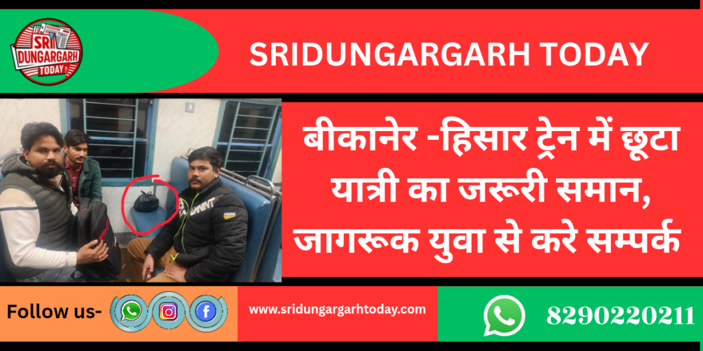 बीकानेर -हिसार ट्रेन में छूटा यात्री का जरूरी समान, जागरूक युवाओं से करे सम्पर्क