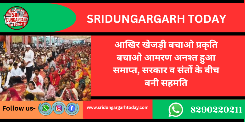 बीकानेर एवं जोधपुर संभाग में राज्य सरकार ने नया कानून बनने तक खेजड़ी काटने कर प्रतिबंध लगा दिया है इसी के। साथ प्रशासन के गले की घंटी बन चुका खेजड़ी बचाओ-प्रकृति बचाओ आमरण अनशन आंदोलन अंतत: अपने मुकाम तक पहुंच गया। राज्य सरकार के दूत बनकर आए राज्य मंत्री एवं विश्नोई समाज के वरिष्ठ नेता के के बिश्नोई तथा भाजपा प्रदेश उपाध्यक्ष बिहारी लाल बिश्नोई, विधायक पब्बाराम बिश्नोई, राज्य जीवजंतु कल्याण बोर्ड के अध्यक्ष जसवंतसिंह आदि की मध्यस्थता से आमरण अनशन विधिवत रूप से समाप्त कर दिया गया जबकि धरना जारी रखने का निर्णय लिया गया।गत कई दिनों से चल रहे इस आंदोलन ने प्रशासन और सरकार दोनों के सामने गंभीर चुनौती खड़ी कर दी थी। आंदोलनकारियों की मुख्य मांग खेजड़ी वृक्षों की कटाई पर रोक, पर्यावरण संरक्षण को लेकर ठोस नीति और भविष्य में ऐसे प्रोजेक्ट्स में जनभावनाओं का सम्मान करने की थी। आमरण अनशन पर बैठे संतों, महिलाओं और ग्रामीणों की बिगड़ती सेहत ने भी स्थिति को संवेदनशील बना दिया था।मंगलवार को सरकार की ओर से आए प्रतिनिधिमंडल ने आंदोलनकारियों से विस्तृत संवाद किया। के के बिश्नोई बिहारी लाल बिश्नोई,पब्बाराम बिश्नोई,जसवंत सिंह आदि ने दोनों पक्षों के बीच सेतु बनते हुएसमाधान का मार्ग प्रशस्त किया। वार्ता के दौरान सरकार ने खेजड़ी वृक्षों के संरक्षण, पर्यावरणीय संतुलन और स्थानीय समाज की सहभागिता सुनिश्चित करने का लिखित में आश्वासन दिया। साथ ही, भविष्य में किसी भी परियोजना से पहले सामाजिक व पर्यावरणीय प्रभावों का आकलन करने पर सहमति बनी। सरकारी आश्वासन के बाद संतों के नेतृत्व में आमरण अनशन समाप्त कराया गया और धरना स्थल से आंदोलन शांतिपूर्वक खत्म हुआ। आंदोलनकारियों ने इसे जनआंदोलन की नैतिक जीत बताते हुए कहा कि यह संघर्ष केवल खेजड़ी के लिए नहीं, बल्कि प्रकृति और भावी पीढिय़ों के अधिकारों के लिए था।प्रशासन ने भी राहत की सांस लेते हुए विश्वास जताया कि संवाद और सहमति से निकला यह समाधान भविष्य में टकराव की बजाय सहयोग का उदाहरण बनेगा।