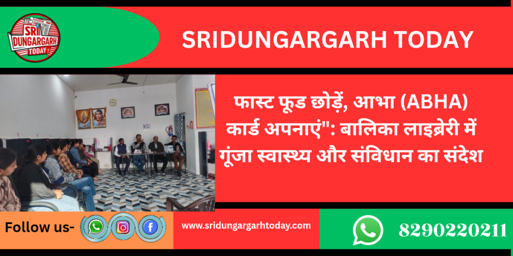 श्री डूंगरगढ़: देवनारायण कॉलोनी स्थित बालिका स्वाध्याय निःशुल्क लाइब्रेरी में गुरुवार को तालुका विधिक सेवा समिति और उप जिला चिकित्सालय के संयुक्त तत्वावधान में एक विशेष स्वास्थ्य एवं विधिक जागरूकता शिविर का आयोजन किया गया। शिविर में छात्राओं को ‘संविधान के अनुच्छेद 21’ से लेकर ‘डिजिटल हेल्थ’ तक की जानकारी दी गई।