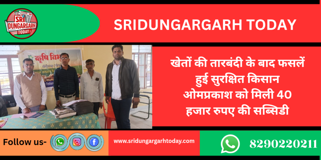 श्रीडूंगरगढ़ पंचायत समिति की ग्राम पंचायत आडसर में शुक्रवार वार को आयोजित ग्राम उत्थान शिविर में किसान ओमप्रकाश सोनी के चेहरे पर खुशी थी। यह खुशी जायज भी थी, क्योंकि ओमप्रकाश को राज्य सरकार की तारबंदी योजना के तहत अपने खेतों के चारों ओर तारबंदी करने पर 40 हजार रुपए के अनुदान की राशि मिली।