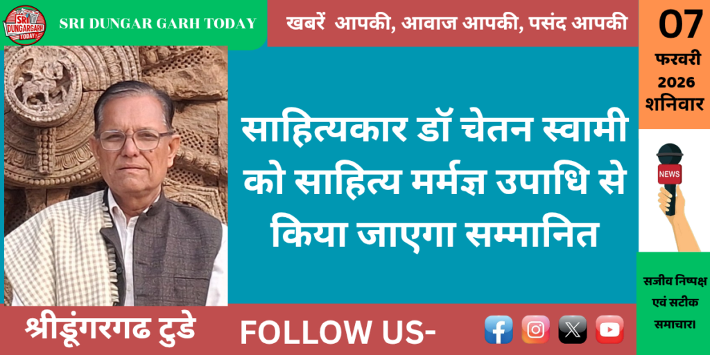 पचास वर्षों से साहित्य-साधना में रत, हिन्दी-राजस्थानी भाषा के साहित्यकार डाॅ चेतन स्वामी को नाथद्वारा की साहित्यिक संस्था साहित्य-मण्डल अपने सर्वोच्च साहित्यिक सम्मान साहित्य-मर्मज्ञ की उपाधि प्रदान करेगी।