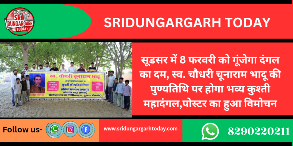 ग्रामीण खेल परंपरा और युवाओं में खेल भावना को सशक्त करने के उद्देश्य से सूडसर गांव में 8 फरवरी को ऐतिहासिक कुश्ती महादंगल का आयोजन किया जाएगा। यह भव्य आयोजन समाजसेवी स्वर्गीय चौधरी चूनारामजी भादू की 21वीं पुण्यतिथि के अवसर पर ग्रामोत्थान सीनियर सेकेंडरी स्कूल के खेल मैदान में होगा।