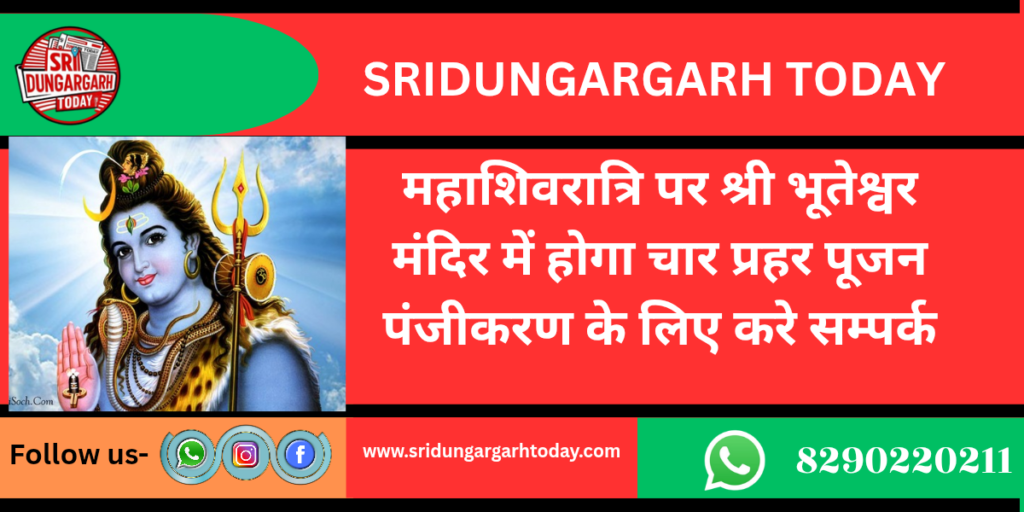 महाशिवरात्रि पर श्री भूतेश्वर मंदिर में होगा चार प्रहर पूजन,पंजीकरण के लिए करे सम्पर्क