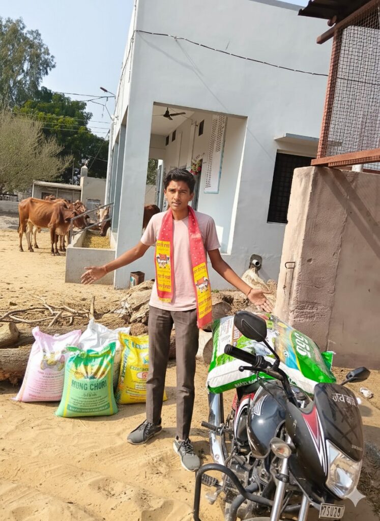 श्री गोपाल गौशाला दुलचासर में ठेकेदार गणेशाराम सुपुत्र पेमाराम सुथार नागल निवासी दुलचासर प्रवासी मुंबई ने गौशाला दुलचासर की गौमाताओं के लिए एक कट्टा मूंग चूरी समर्पित किया। सचिव रेवंतसिंह पड़िहार ने बताया कि मूंग चुरी का कट्टा गौशाला में पहुंचाने में सहयोग नंदकिशोर सुपौत्र करणी दान सुथार नागल निवासी दुलचासर ने किया गौशाला कमेटी ने दानदाता एवं सहयोग कर्ता का आभार प्रकट करते हुए ईश्वर से सदैव सुख समृद्धि कि कामना की।