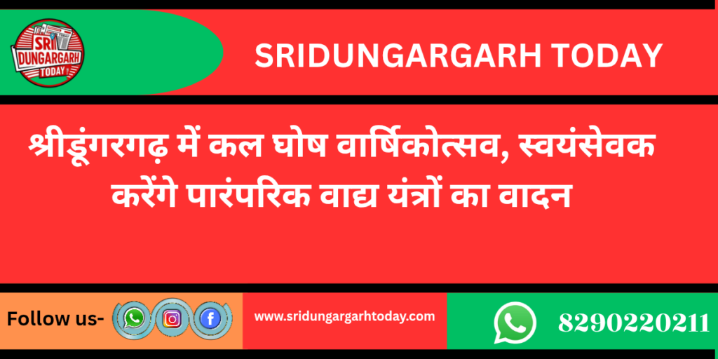 श्रीडूंगरगढ़ में कल घोष वार्षिकोत्सव 2026 का होगा आयोजन स्वयंसेवक करेंगे पारंपरिक वाद्य यंत्रों का वादन