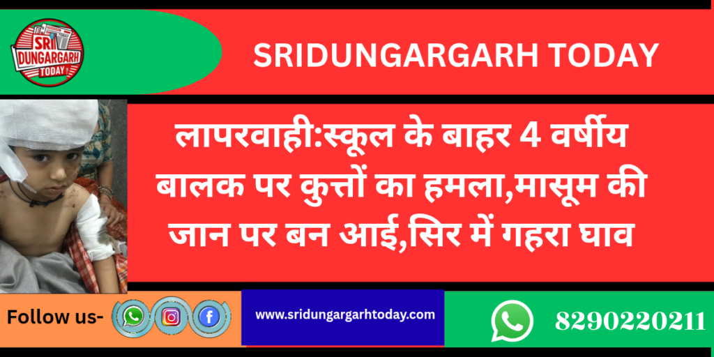 गांव ऊपनी में स्थित सीबीएसई बोर्ड की सरकारी स्कूल स्वामी विवेकानंद मॉडल स्कूल के बाहर एक दिल दहला देने वाली घटना सामने आई। घटना मंगलवार सुबह की है। स्कूल गेट के पास एक आवारा कुत्ते ने 4 साल के मासूम बालक पर हमला कर दिया। गनीमत रही कि समय रहते एक ग्रामीण ने बालक को बचा लिया, वरना बड़ा हादसा हो सकता था।