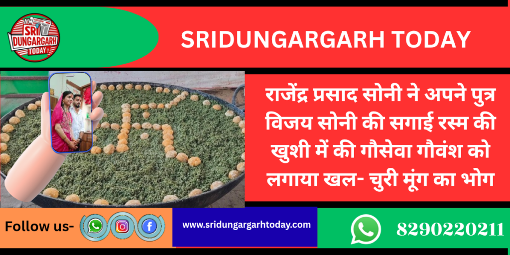 राजेंद्र प्रसाद सोनी ने अपने पुत्र  विजय सोनी की सगाई रस्म की खुशी में की गौसेवा गौवंश को लगाया खल- चुरी मूंग का भोग