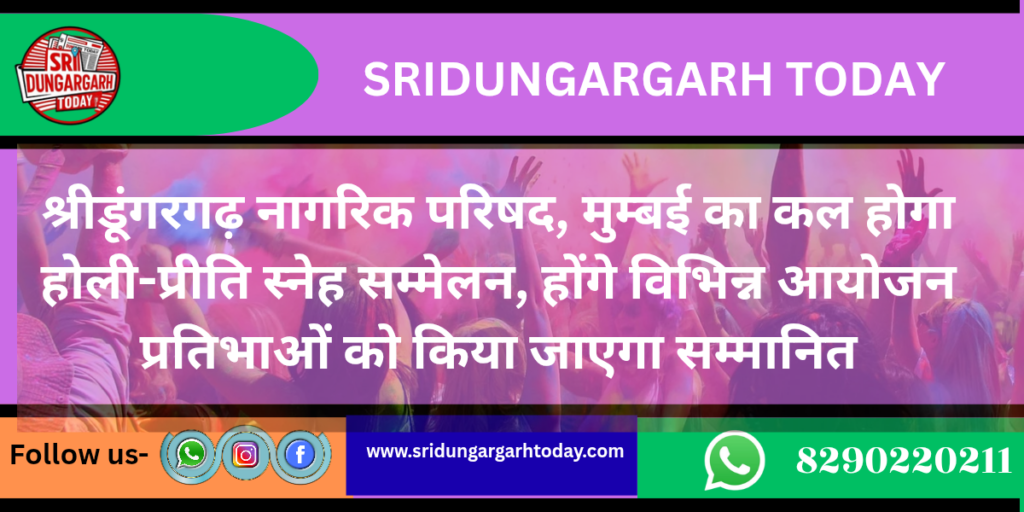 श्रीडूंगरगढ़ नागरिक परिषद, मुम्बई का कल होगा होली-प्रीति स्नेह सम्मेलन, होंगे विभिन्न आयोजन प्रतिभाओं को किया जाएगा सम्मानित