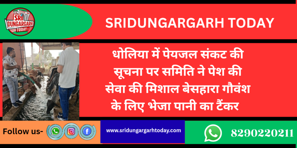 धोलिया में पेयजल संकट की सूचना पर समिति ने पेश की सेवा की मिशाल बेसहारा गौवंश के लिए भेजा पानी का टैंकर