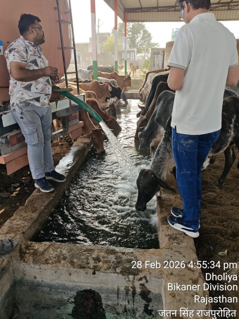 समिति के अध्यक्ष जतनसिंह राजपुरोहित, जयप्रकाश एवं भीखाराम सुथार पानी का टैंकर लेकर गांव पहुंचे और सभी पशु खेलियों में पानी भरवाया, जिससे बेसहारा गौवंश को राहत मिली