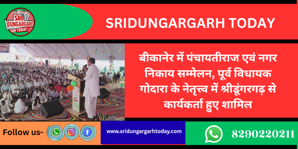बीकानेर में पंचायतीराज एवं नगर निकाय सम्मेलन, पूर्व विधायक गोदारा के नेतृत्त्व में श्रीडूंगरगढ़ से कार्यकर्ता हुए शामिल
