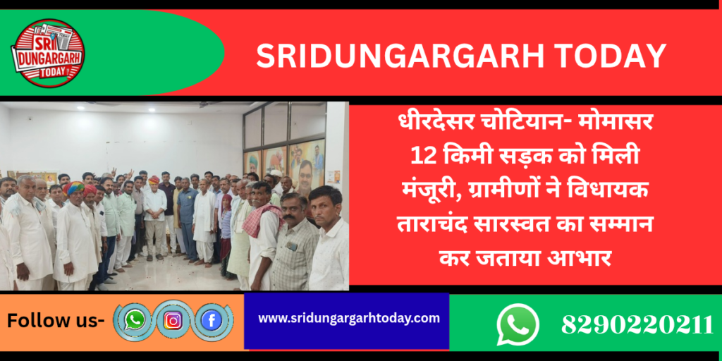 श्रीडूंगरगढ़ में धीरदेसर चोटियान से मोमासर तक 12 किमी की सड़क स्वीकृति करवाने पर ग्रामीणवासियों ने विधायक ताराचंद सारस्वत का अभिनंदन किया |