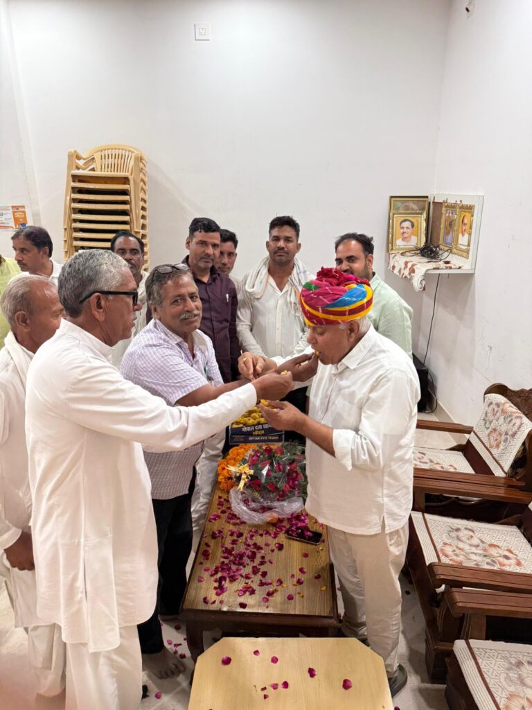 ग्रामीणों ने विधायक सेवा केन्द्र पहुँचकर विधायक को साफा, शॉल ओढ़ाकर मिठाई खिलाकर आभार जताया