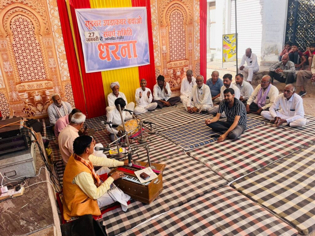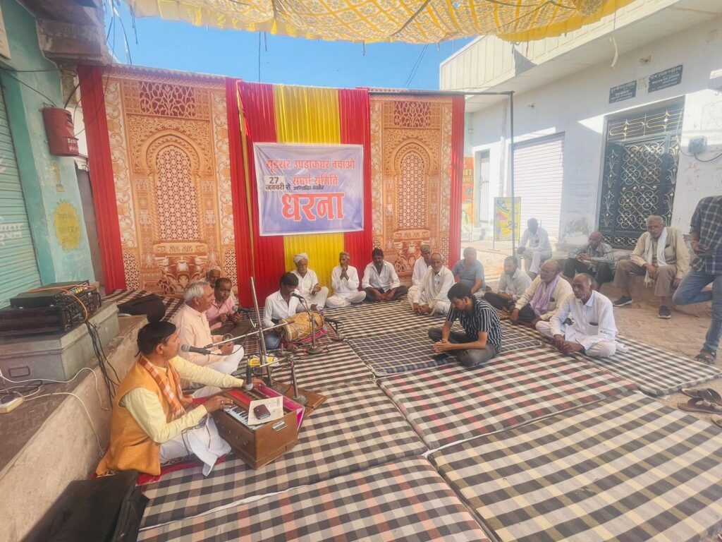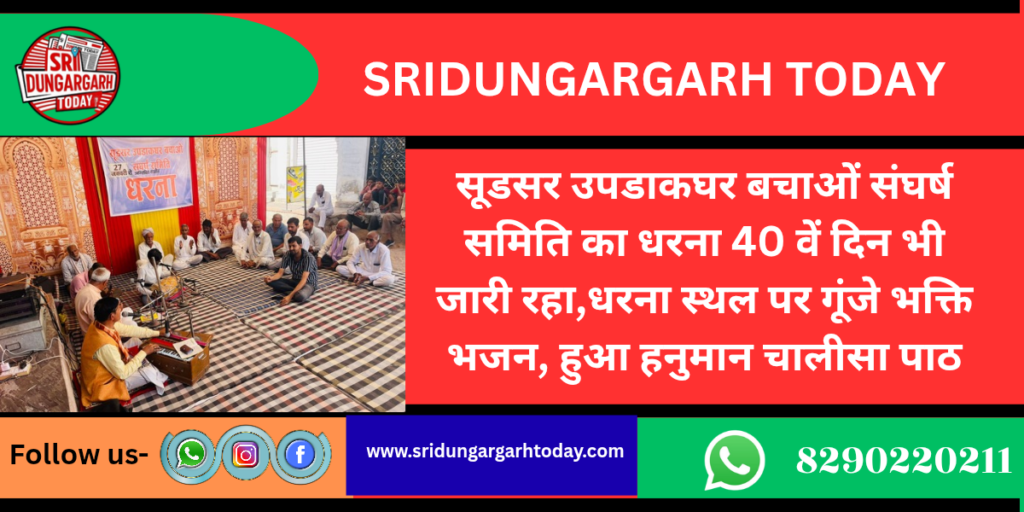 सूडसर कस्बे के मुख्य बाजार स्थित उपडाकघर के समक्ष चल रहे धरना स्थल पर 40वें दिन भक्ति भजनों की स्वरलहरियां गूंजी और हनुमान चालीसा की चौपाइयों की गूंज सुनाई दी।