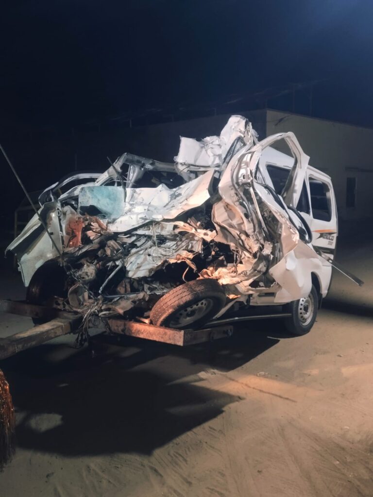 जानकारी के अनुसार ईको वैन ओवरटेक कर रही थी, तभी सामने से आ रहे ट्रेलर से उसकी टक्कर हो गई। टक्कर से बचने के प्रयास में ट्रेलर चालक ने वाहन को सड़क से नीचे उतार दिया। इस दौरान ट्रेलर 11 केवी बिजली लाइन से टकरा गया, जिससे बिजली का पोल और तार टूट गए।