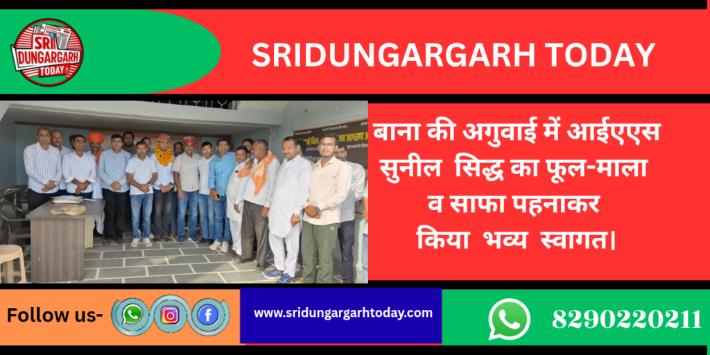पीसीसी सदस्य व कांग्रेस के युवा नेता हरिराम बाना की अगुवाई में यूथ कांग्रेस कार्यालय में युवा शक्ति ने आईएएस 2025 में 533वीं रैंक हासिल करने वाले सुनील सिद्ध का साफ़ा व फूल माला पहनाकर भव्य  स्वागत किया गया।