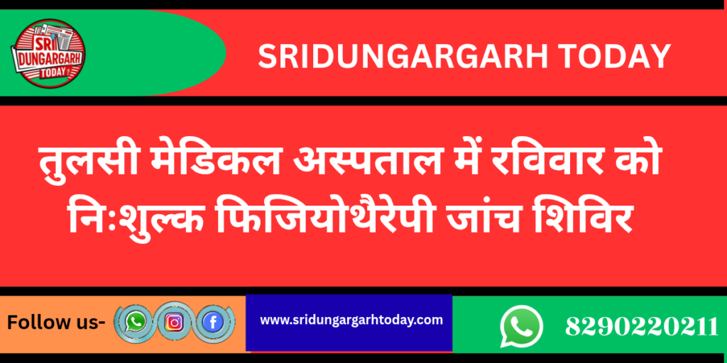 तुलसी मेडिकल एवं रिसर्च सेंटर में रविवार 15 मार्च 2026 रविवार को निःशुल्क फिजियोथैरेपी जांच शिविर का आयोजन किया जाएगा। शिविर में बिना चीर-फाड़, बिना ऑपरेशन और बिना इंजेक्शन के आधुनिक फिजियोथैरेपी पद्धति से शरीर के विभिन्न प्रकार के दर्द का उपचार किया जाएगा।