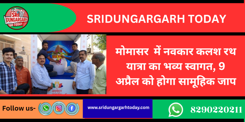 यह रथ पूरे राजस्थान में भ्रमण कर 9 अप्रैल को होने वाले सामूहिक नवकार महामंत्र जप का संदेश जन-जन तक पहुँचा रहा है।इसी क्रम में यह नवकार महामंत्र संदेश रथ मंगलवार 17 मार्च की सुबह 9:00 बजे मोमासर स्थित तेरापंथ भवन पहुंचने पर भव्य स्वागत किया गया।
