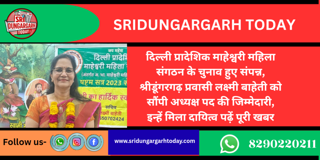 दिल्ली प्रादेशिक माहेश्वरी महिला संगठन के चुनाव हुए संपन्न, श्रीडूंगरगढ़ प्रवासी लक्ष्मी बाहेती को सौंपी अध्यक्ष पद की जिम्मेदारी, इन्हें मिला दायित्व पढ़ें पूरी खबर