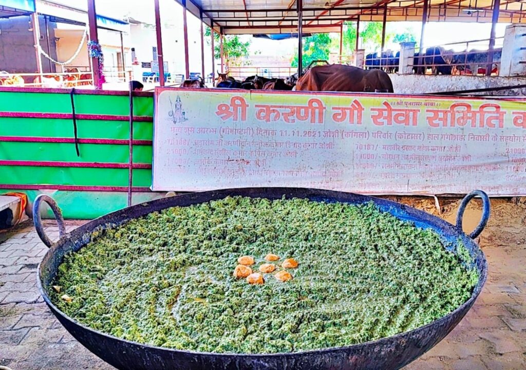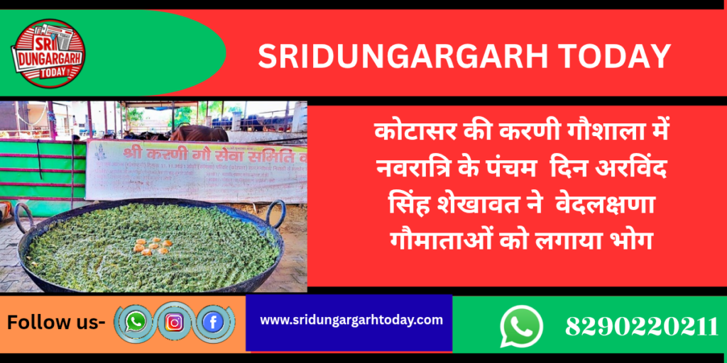 कोटासर की करणी गौशाला में नवरात्रि के पंचम दिन अरविंद सिंह शेखावत ने वेदलक्षणा गौमाताओं को लगाया भोग