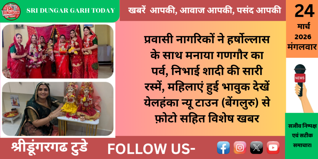 श्रीडूंगरगढ़ क्षेत्र में तेजी से बढ़ता न्यूज पोर्टल श्रीडूंगरगढ़ टुडे अब बेंगलुरु दिल्ली कोलकाता, मुंबई,सूरत सहित विभिन्न राज्यों सहित विदेश में भी अपनी अलग पहचान बना रहा है। बता देवें की प्रवासी नागरिकों की खबर श्रीडूंगरगढ़ टुडे प्रमुखता से प्रकाशित करता है। इसके लिए प्रवासी नागरिक धन्यवाद आभार ज्ञापित करते नजर आ रहे है। इसी क्रम मे श्रीडूंगरगढ़ टुडे की पाठक श्रीडूंगरगढ़ क्षेत्र के गांव हेमेरा निवासी मीनाक्षी सारस्वत हाल येलहंका न्यू टाउन (बेंगलुरु) ने गणगौर पर्व की विशेष फ़ोटोज उपलब्ध करवाते हुए बताया की राजस्थान की समृद्ध सांस्कृतिक,पारम्परिक मातृ शक्ति आस्था,प्रेम एवं पारिवारिक सौहार्द्र के प्रतीक गणगौर पर्व भगवान शिव और मां पार्वती को समर्पित गणगौर का पर्व बेंगलुरु में धूमधाम से मनाया मीनाक्षी ने बताया कि यह त्योहार होली के दूसरे दिन से शुरू होकर 16 दिनों तक चलता है। यह विशेष रूप से कुंवारी कन्याओ वैवाहिक जीवन के लिए व्रत रखती हैं,और कुंवारी लड़कियां मनचाहा वर पाने के लिए पूजा करती है। कुंवारी लड़कियां इस दौरान व्रत रखती हैं। नवविवाहित महिलाएं अपने विवाह के पहले वर्ष में मायके जाकर गणगौर की पूजा करती हैं,इसलिए इसे सुहागपर्व भी कहा जाता है। पौराणिक मान्यता के अनुसार,चैत्र शुक्ल तृतीया को राजा हिमाचल की पुत्री गौरी का विवाह भगवान शिव से हुआ था। इसी की स्मृति में यह पर्व मनाया जाता है। त्योहार की शुरुआत में कन्याएं होलिका दहन की राख से गोबर के आठ पिंड बनाती हैं। इन पिंडों को दूब पर रखकर रोज पूजा जाता है। दीवार पर काजल और रोली का टीका लगाया जाता है। शीतलाष्टमी तक यह क्रम चलता है। इसके बाद मिट्टी से ईसर-गणगौर की मूर्तियां बनाकर पूजन किया जाता है। गणगौर की धूम सिर्फ राजस्थान तक ही सीमित नहीं है। जहां-जहां मारवाड़ी समुदाय के लोग रहते हैं,वहां भी यह पर्व धूमधाम से मनाया जाता है। श्यामा सारस्वत श्रीडूंगरगढ़ हाल बेंगलुरु ने बताया कि येलहंका न्यू टाउन में गणगौर का पर्व धूमधाम से मनाया 16 दिन तक विभिन्न आयोजन हुए इस दौरान मारवाड़ी सहित बेंगलुरु सिटी के आस पास की महिलाओं ने भी बड़ी संख्या में भाग लिया। ममता सारस्वत ने बताया कि समय के साथ गणगौर उत्सव का स्वरूप भी बदल रहा है। जहां एक ओर पारंपरिक रीति-रिवाजों का पालन किया जा रहा है,वहीं दूसरी ओर आधुनिकता का रंग भी इस त्योहार में घुलता जा रहा है। पहले जहां गणगौर पूजन के दौरान महिलाएं और युवतियां पारंपरिक लोकगीत गाकर उत्सव मनाती थीं,वहीं अब डीजे और साउंड सिस्टम की धुनों पर नृत्य का चलन बढ़ गया है। अब गणगौर केवल पूजा तक सीमित नहीं रह गई,बल्कि इसमें हल्दी सेरेमनी,रिंग सेरेमनी और कलर थीम जैसे नए ट्रेंड जुड़ गए हैं। फिर भी 