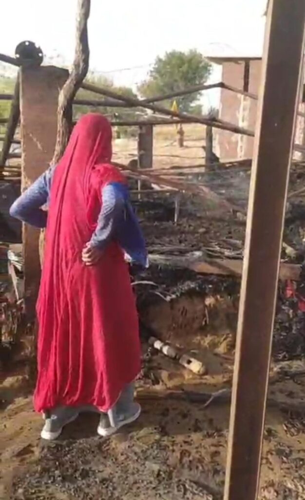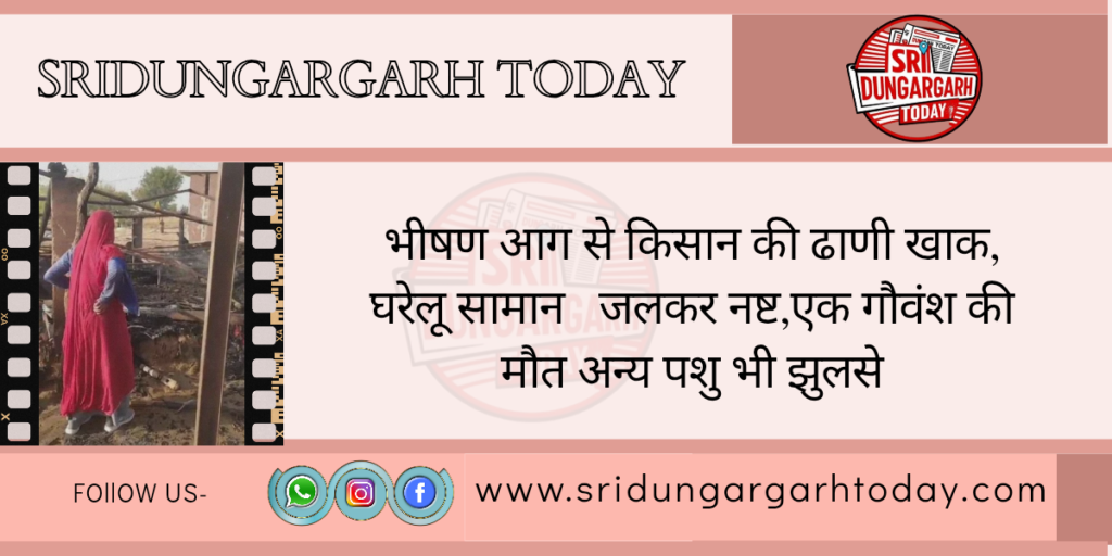 भीषण आग से किसान की ढाणी खाक,घरेलू सामान जलकर नष्ट,एक गौवंश की मौत अन्य पशु भी झुलसे